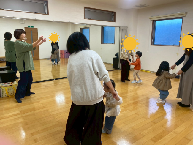 歌に合わせてお母さんや先生と上手に握手をしたり、曲の速さに合わせて振りを早めたりゆっくりしたり、テンポが変わっていきました。