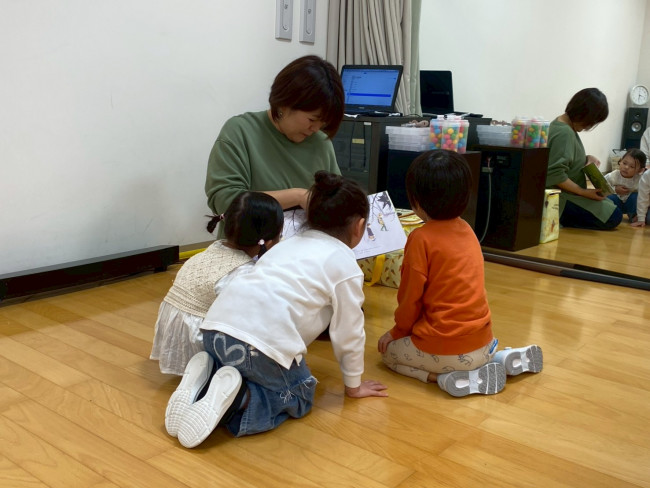 ウォーミングアップでは、「グーチョキパーでなにつくろう」の手遊びと、「おしくらまんじゅう」の絵本の読み聞かせを行いました📖