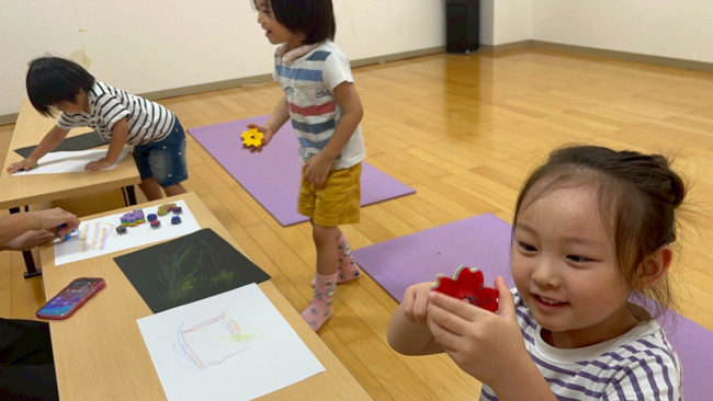後半はキャンバスを使っての制作を行い、「ままにあげる」「家で飾る」と話しながら、