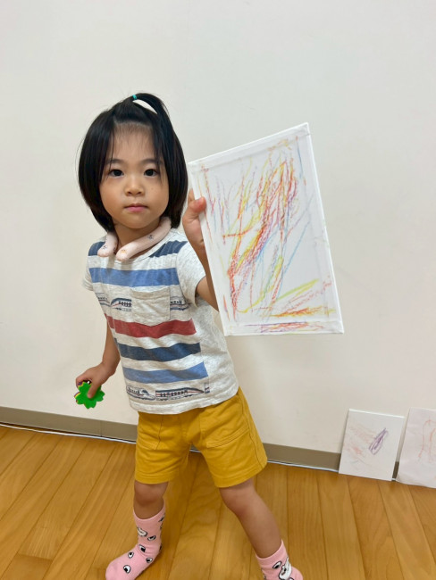 はるくくんは集中してダイナミックに描き進め、完成後には作品を見せに来てくれる姿もありました😊