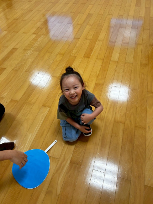 青のうちわが出たら動き回る!赤のうちわが出たらストップしてポーズ!