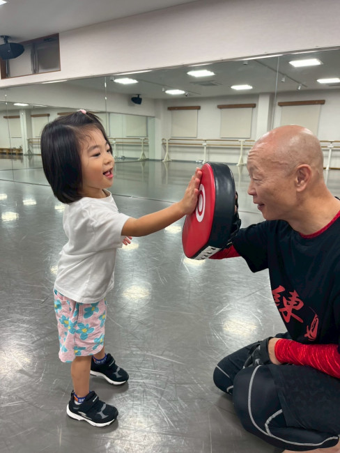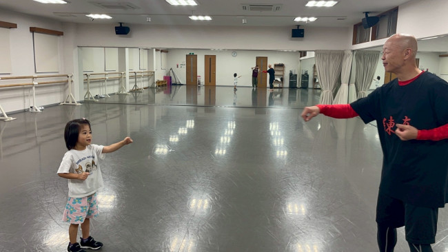 スタジオの端から端まで元気いっぱいに歩きながら「エイッ!」と突きをしたり、