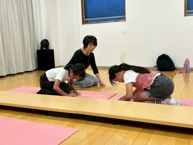 レッスンでは、まず基本の座り方・立ち方や、音を立てずに動く方法を復習しました。