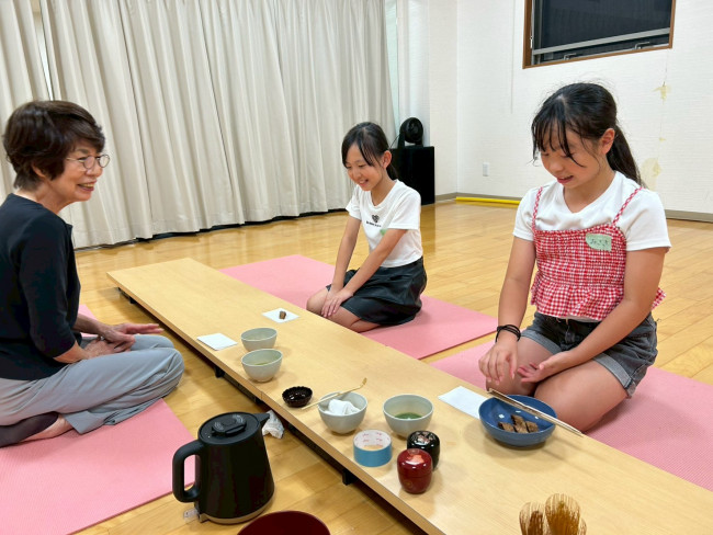 お茶の時間では、道具の名前や取り扱い方、持ち方を実際に見ながら学びました。