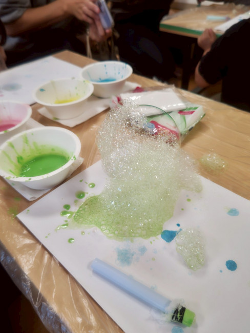 泡をたくさん作ったり、同じ色で吹き続けたり、工夫しながら自分だけの表現を楽しんでいました🌈