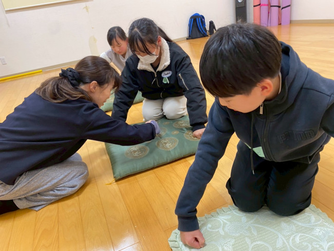 最初に「自分ならどう座りますか?」という問いかけがあり、それぞれが考えながら実践しました。