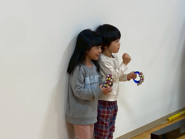 2人で壁に立ってお互いに鈴を鳴らし合う様子もあり、去年と比べてお友だちとの関わりが増えたことにとても嬉しく感じました🎄💕