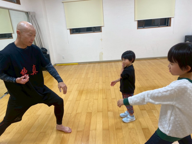 難しいと呟く子も、諦めずに先生の動きを見よう見まねで挑戦していました。