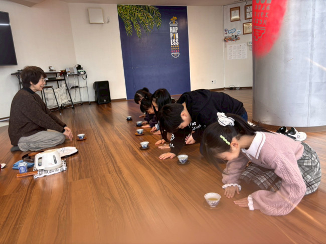 お客様にお出しする際の動きや、お茶を出していただいた時の飲み方、飲み終わった後の湯呑みの返し方、そしてお礼の所作まで、順を追って体験しました。