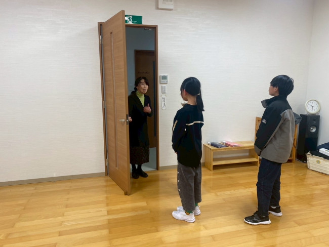 最後は、ドアから入るときと出るときの挨拶を、実践形式で行いました。