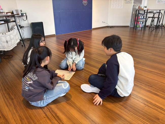 ウォーミングアップでは「ミラーストレッチ」と「共通点な〜んだ」に取り組みました。