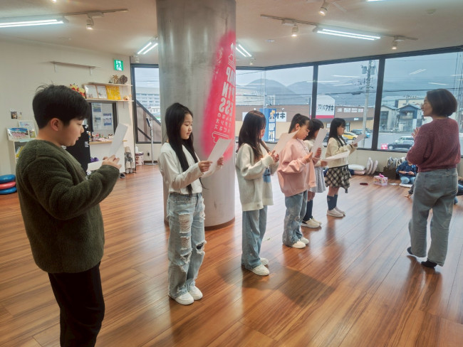 最後は「みんなで声を揃えるために、動きをつけてみよう!」という提案がありました。