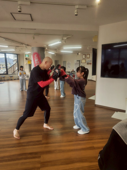 グローブをつけて、正拳突きをしっかりと繰り出していました✨