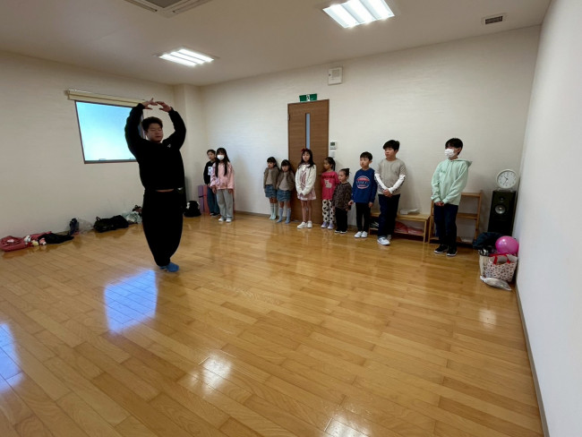 バレエが初めての子も多く、立ち方のポイントや足の揃え方を確認しながら進めていき、少しずつ形が整っていきました。